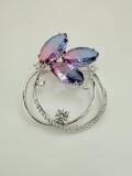 繊細でパープルのスワロが3つ付いてキラキラで魅力的な上品さがあります。フォーマル、ジャケット、コート、ストール、帽子、バックなどの小物にも合うデザインです サイズ:横約4.5cm×高さ約4cm