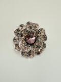 花型でキラキラのピンクのスワロで魅力的な上品さがあります。フォーマル、ジャケット、コート、ストール、帽子、バックなどの小物にも合うデザインです サイズ:横約3cm×高さ約3cm