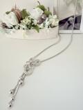 リボンのシルエットを、繊細なラインときめくスワロで表現し、動くたびに胸元で優雅に舞います。 カラー:シルバー サイズ:約80cm+5cm